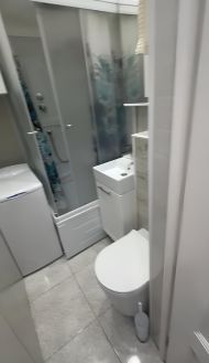 В санузле: душевая кабина, стиральная машина.