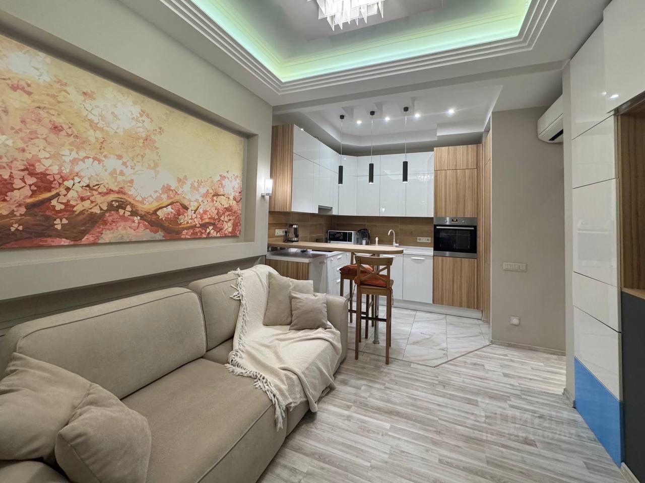 В квартире есть все необходимое для комфортного проживания. На кухне и в комнате установлена современная мебель и техника, а именно: кондиционер, холодильник, посудомоечная машина, духовой шкаф, варочная панель, микроволновая печь, камин, телевизор, колонка Алиса, пылесос, утюг и стиральная машина.