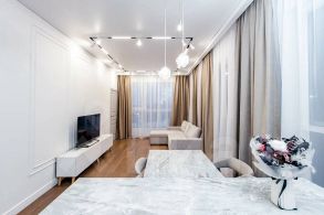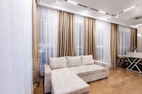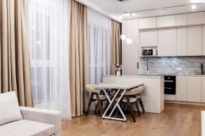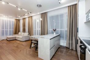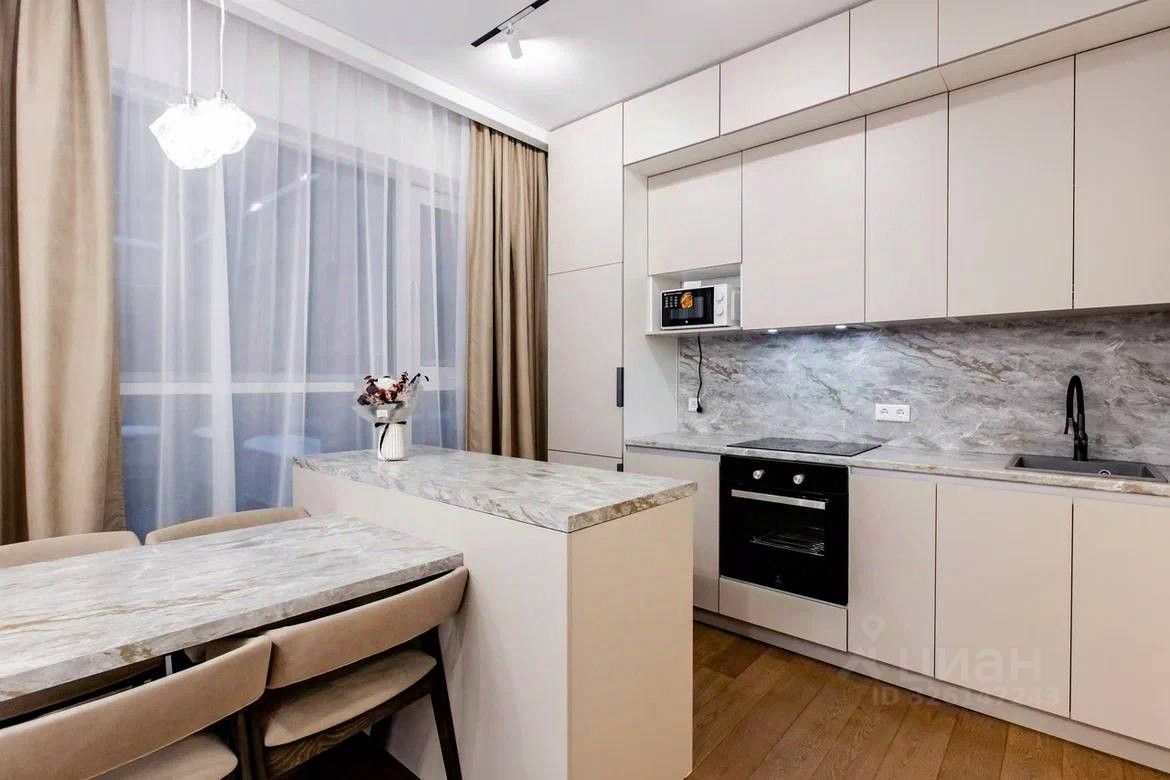 Продумана каждая деталь для вашего комфорта и уюта. Современная функциональная мебель и бытовая техника: встроенная кухня с островом, эргономичный диван-трансформер, который превращается в полноценное спальное место, удобная кровать с ортопедическим матрасом. Отдельная просторная гардеробная и множество других удобных мест хранения. Проведен высокоскоростной интернет.