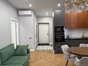Квартира оснащена всей необходимой новой мебелью и новой премиальной бытовой техникой (кондиционер, варочная панель, электрический духовой шкаф, вытяжка, полноразмерный холодильник, микроволновая печь, электрический чайник, посудомоечная машина, стиральная машина, сушильная машина, проточный водонагреватель, электрический полотенцесушитель).