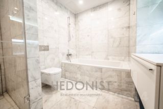 Апартамент состоит из: просторной кухни-гостиной, спальни, 2 санузлов, гардеробной, постирочной зоны.