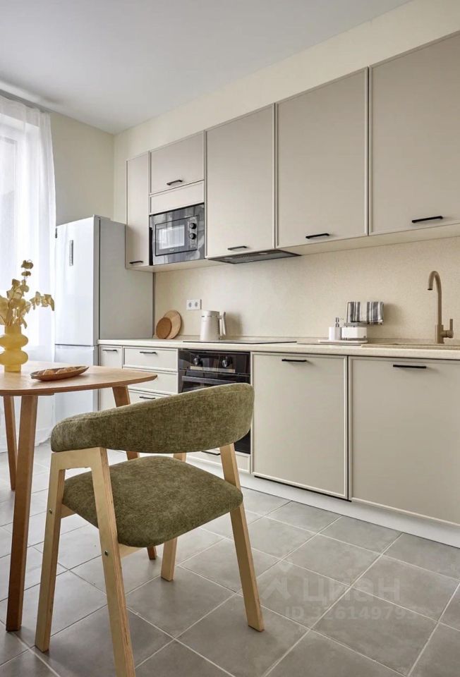 В квартире сделан ремонт, что делает её не только стильной, но и комфортной для проживания. Просторная кухня оснащена всей необходимой мебелью и современной техникой, включая холодильник и посудомоечную машину. В комнате уже есть мебель, а также установлен кондиционер для поддержания комфортной температуры круглый год. В ванной комнате установлена ванна, а также есть стиральная машина. Совмещенный санузел удобен и функционален.