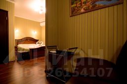 Просторный,уютный однокомнатный номер укомплектован всем необходимым для хорошего отдыха всей семьей: двуспальная ортопедическая кровать, диван раскладной на два дополнительных места,тумба-стол, пуфик, шкаф-купе, кондиционер, плазменный телевизор, мини-бар, электрочайник, санузел в номере, гостиничная косметика, махровые полотенца, фен.