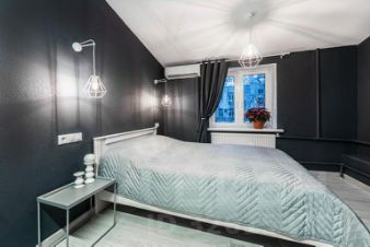 большой двуспальной кроватью с ортопедическим матрасом,