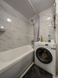 Квартира для 4 гостей. Спальные места: диван и двуспальная кровать Стиральная машина, ванна. Квартира укомплектована необходимой бытовой техникой и полностью готова к заселению. Постельное белье и полотенца предоставляются.