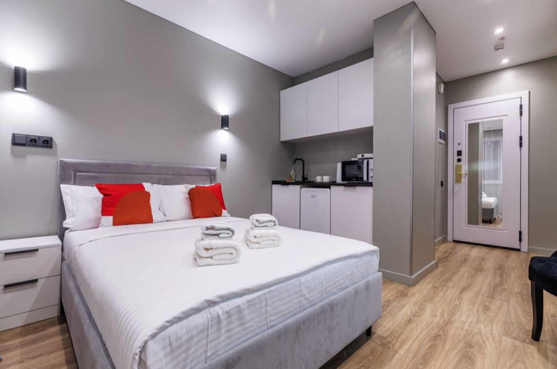 Удобства в апартаментах: Wi-Fi (100мб сек ), Смарт Тв 50 дюймов, СВЧ, чайник, вся необходимая посуда, качественные постельное белье и полотенца, тапочки, зубной набор, гель, шампунь, утюг, гладильная доска, фен и прочие бытовые мелочи. Шикарные апартаменты с дизайнерским евро-ремонтом, в светлых тонах, со всей необходимой мебелью. Спальные места: двуспальная кровать(160 на 200). Встроенная кухня, душевая кабина, импортная сантехника.