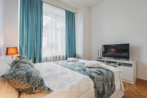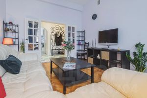 Две спальные комнаты с большими двуспальными кроватями в каждой подарят крепкий сон. Уютная гостиная с большим угловым раскладывающимся кожаным диваном в комфорте разместит гостей. Окна квартиры выходят на Саввинское Подворье - красивейший памятник архитектуры. К услугам гостей: высокоскоростной Wi-Fi (100 МБ/сек), кабельное телевидение, комплекты постельного белья и полотенец, фен, утюг, гигиенические принадлежности, тапочки.