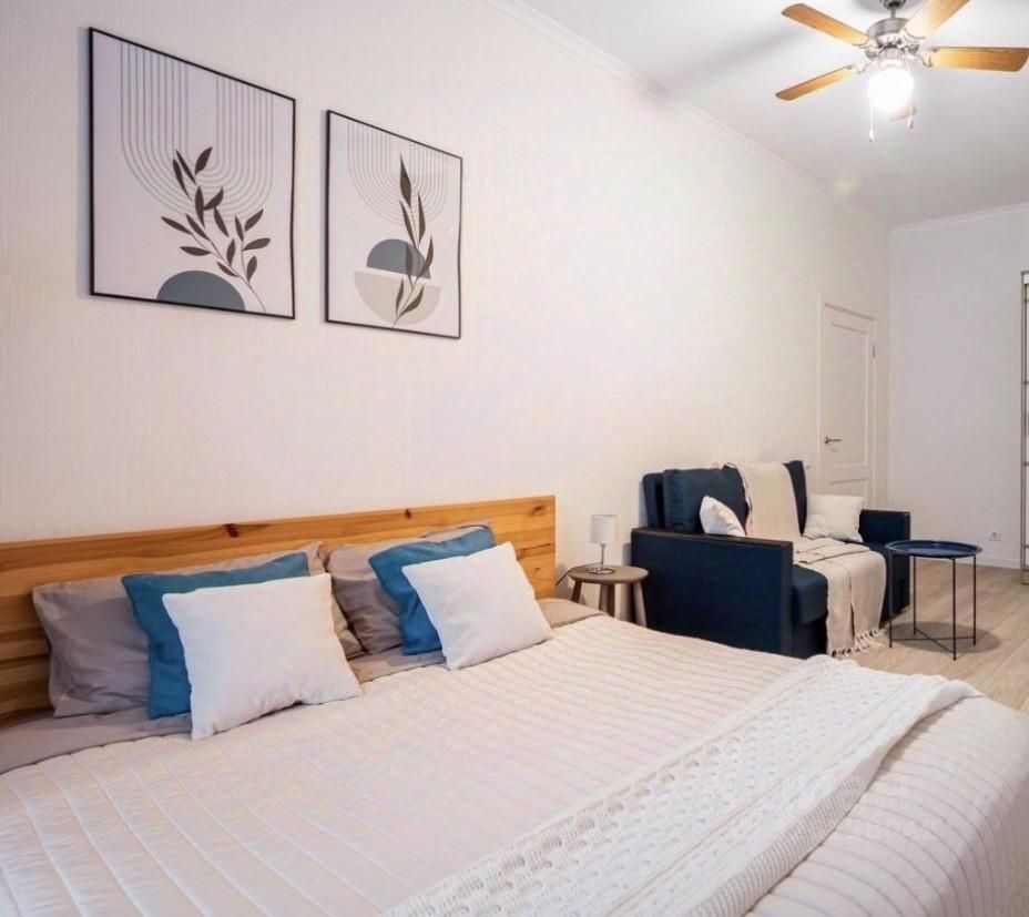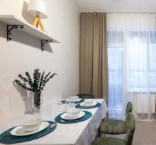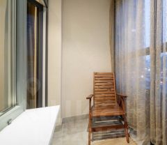 В квартире есть все необходимое для комфортной жизни. Просторная комната и кухня обставлены современной мебелью. В наличии вся необходимая техника: холодильник, телевизор и стиральная машина. Ванная комната оборудована ванной, что особенно приятно после долгого рабочего дня. Изюминка квартиры — лоджия, где можно наслаждаться свежим воздухом.