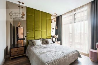 ЖК РедСайд. Чудесная 4-комнатная квартира в элитном доме, расположенная на 6 этаже 21 этажного здания. Спален: 2, санузлов: 2. Общая площадь: 110 кв.м. Потолки 3 м. Ремонт в современном стиле c использованием качественным материалов в отделке и декоре. Квартира полностью с мебелью, вывоз обсуждается. Огороженная, охраняемая территория. Подземный паркинг, машиноместо оплачивается отдельно. Открытый вид, много света. Есть балкон. Есть гардеробная комната. В наличии: посудомоечная машина, холодильник, кондиционер, бойлер, душевая кабина, ванна, постирочная комната, стиральная машина, сушильная машина, подогрев полов, телевизор, высокоскоростной интернет. Можно с детьми. На территории двора есть детский сад. Фитнес-клуб "World class". В доме расположен продуктовый магазин "Азбука вкуса", салоны красоты, химчистка, кафе.