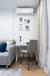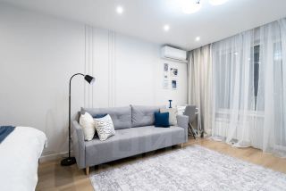 Сдается уютная квартира с дизайнерским ремонтом на длительный срок. В квартире есть все необходимое для комфортного проживания: кондиционер, холодильник, стиральная машина и микроволновая печь. Просторная кухня оборудована современной техникой и обеденной зоной.