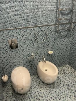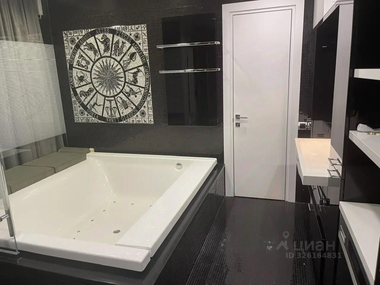 Оригинальное расположение ванной комнаты с большой ванной размером 2,5 на 2 метра, с изолированным санузлом.