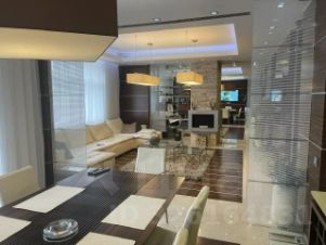 В квартире имеется: кухня , столовая, большая гостиная с био-камином, гардеробная комната, большая детская комната с отдельным санузлом, спальная комната.