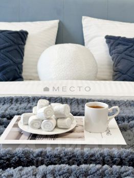 В квартире сделан стильный, качественный ремонт. Дизайн и функциональность квартиры были продуманы дизайнером. Все комоды, тумбочки, пуфики, люстры, посуда и столовые приборы были подобраны со вкусом