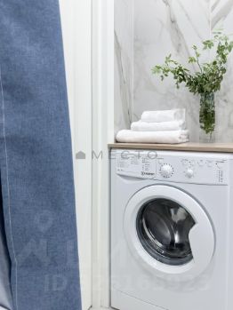 Просторный сан.узел 3 м2, в котором установлена стиральная машина. В коридоре также есть большой шкаф для ваших вещей.