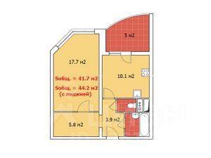 Состоит из холла, кухни, лоджии, жилой комнаты, гардеробной и раздельного санузла