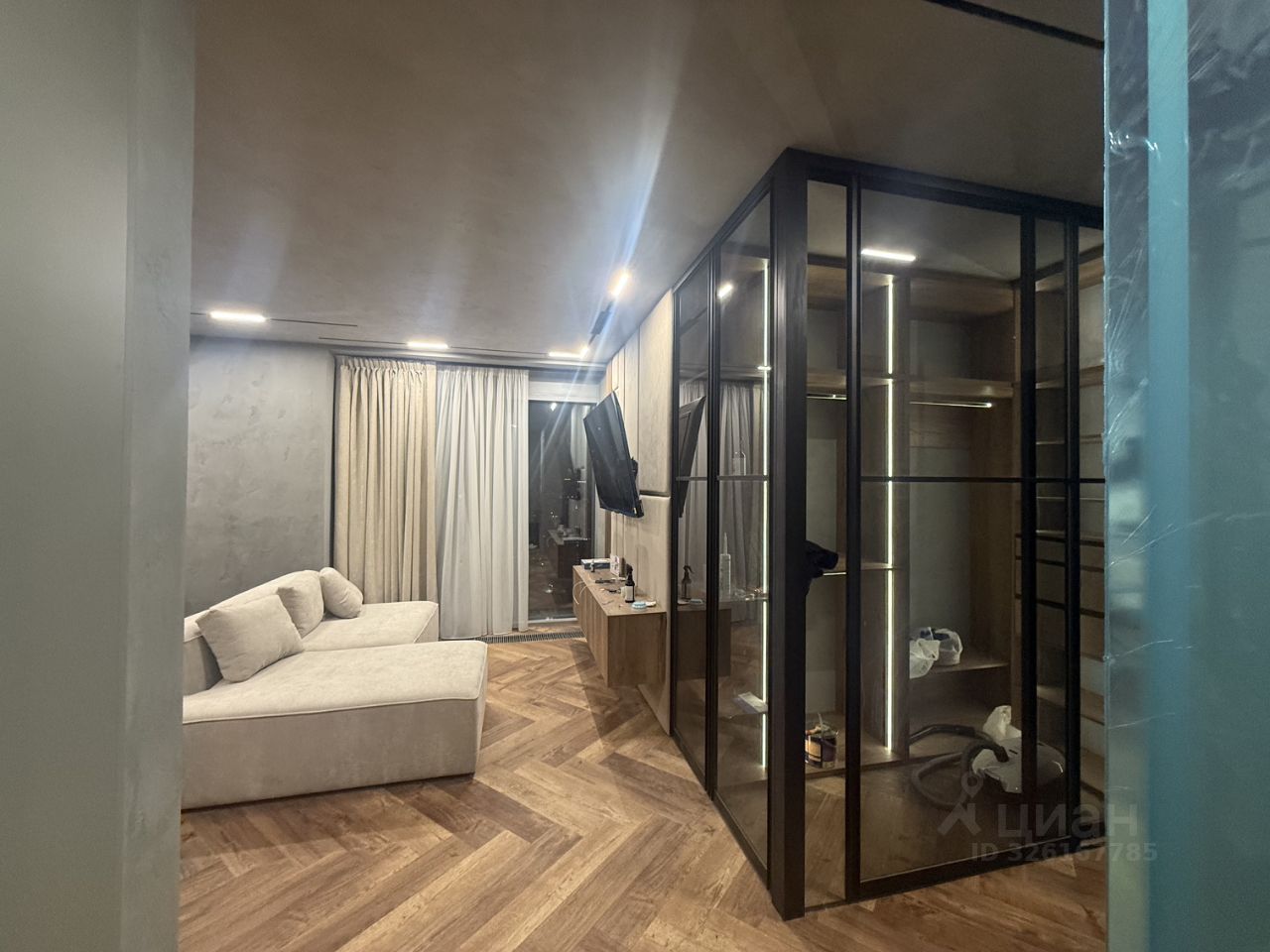 Дизайн: Авторский интерьер в стиле мягкий лофт. Сочетание фактурной декор.штукатурки под бетона, натурального дерева и премиального керамогранита под мрамор. Три сценария освещения в каждой зоне.