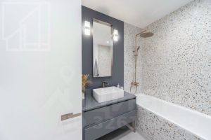 Планировка: 2 спальни (одна из них мастер спальня с гардеробной и своим санузлом с душем), второй санузел с ванной, кухня-гостиная, вторая гардеробная при входе, постирочная, балкон.