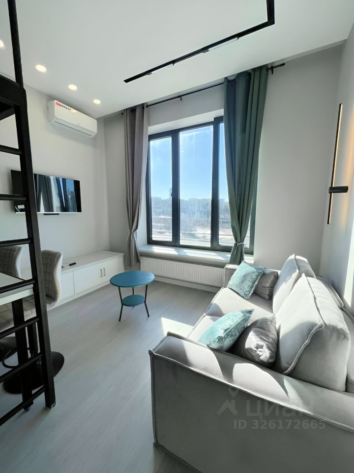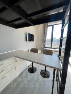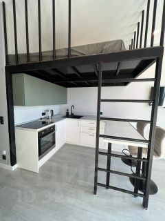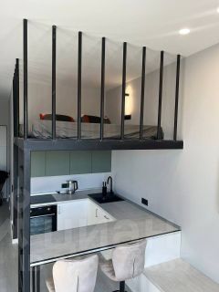 Диван раскладывается, двуспальная кровать над кухонной зоной.