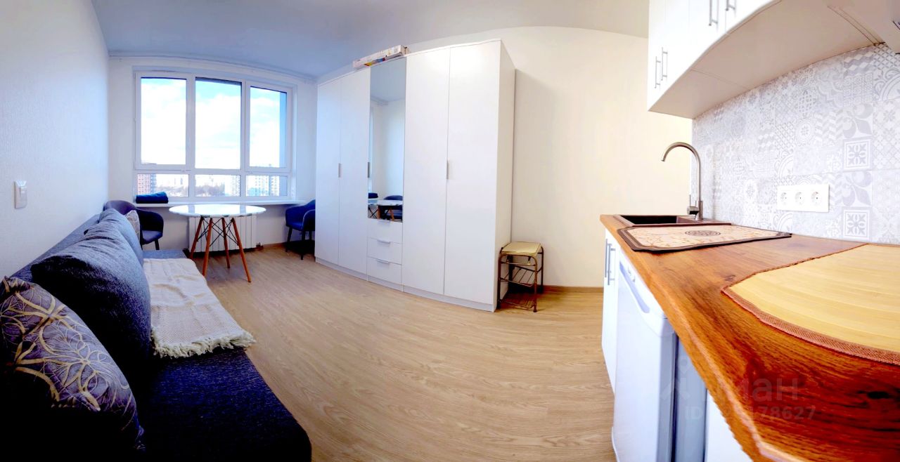 В студии, выполнен свежий ремонт, большие окна, вид на парк.