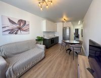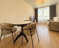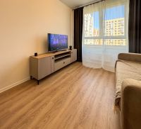 Квартира оборудована всей необходимой техникой для комфортного проживания: Заезжай и живи.В ванной имеется стиральная машина отдельно с сушилкой, кухонный гарнитур с посудомоечной машиной и СВЧ, раскладной диван, телевизор, шкаф для хранения вещей и рабочая зона в спальне.
