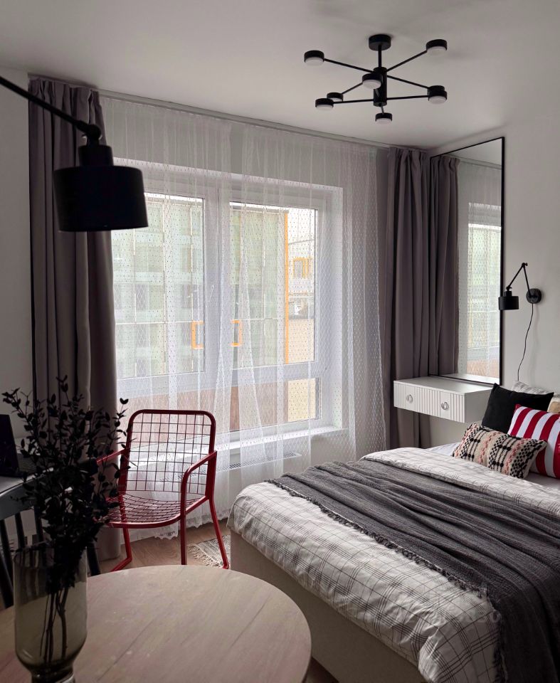 Первый раз сдается новая студия 20м2 в доме 2025 г постройки. 4 этаж, окна выходят на улицу на школу.