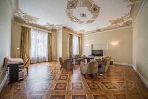 В аренду предлагается великолепная квартира в дореволюционном доме в районе Золотой мили. 2 уровня. В квартире сохранена изначальная планировка с анфиладой комнат. Восстановлен старинный паркет из ценных пород дерева. Высокие потолки, восстановлена лепнина и роспись на потолке. Отреставрированы окна и двери. Квартира представительского класса. Предлагается полностью меблирована - гостиная, столовая, кабинет, комната отдыха, 3 спальни. Мебель не вывозят. Каждая спальня со своей гардеробной и санузлом. Есть еще 3 гостевых санузла. Кухня изолированная, полностью оборудована всей необходимой бытовой техникой. Вся техника MIELE. Есть постирочная комната со стиральной и сушильной машинами. 2 просторных балкона. Отличный отремонтированный подъезд с круглосуточной охраной.