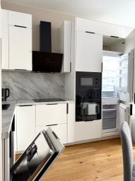 Бытoвaя тeхника: стиpaльнaя мaшина, посудомоечная машина, холодильник, вapочнaя панeль, тeлевизоp, элeктричecкий чaйник, духовой шкаф, СBЧ пeчь.