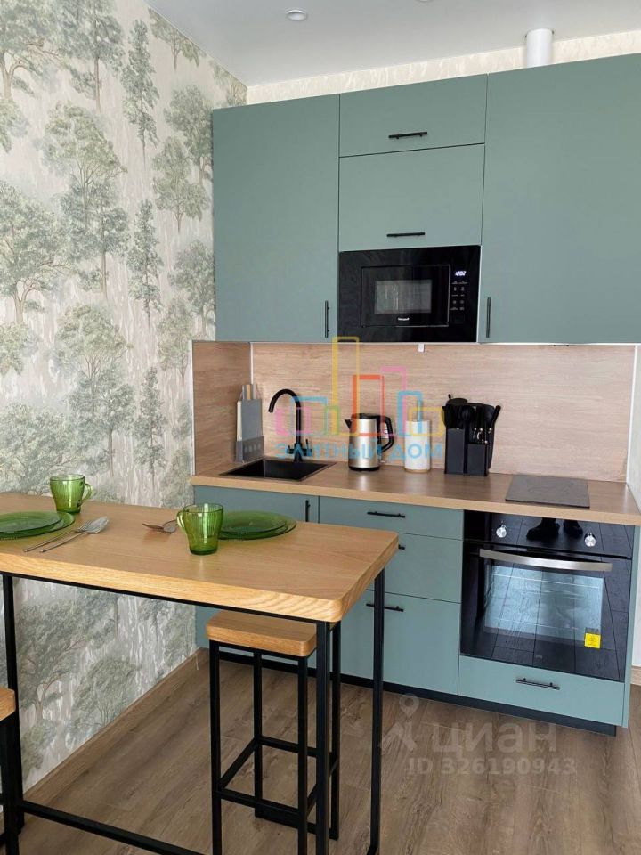 Планировкой предусмотрена встроенная кухня, барная стойка. спальное место раскладной диван (160х200 см) и совмещенный санузел с душевой. В квартире есть вся необходимая для комфортного проживания бытовая техника, встроенный фильтр для очистки воды, водонагреватель.