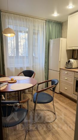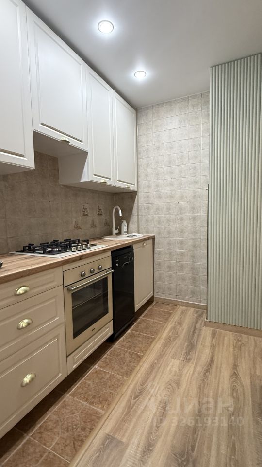 Кухня 9 м² со встроенной новой техникой (варочная панель, духовой шкаф, посудомоечная машина, холодильник) и обеденной группой. Из кухни выход на обустроенную лоджию, где в тёплое время года уютно пить кофе и завтракать.