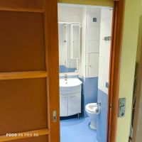 В квартире выполнен евроремонт. В наличии вся необходимая мебель как на кухне, так и в комнате. Из техники есть кондиционер, холодильник, телевизор и стиральная машина. Санузел совмещённый, с душевой кабиной, что удобно в повседневной жизни.