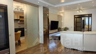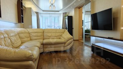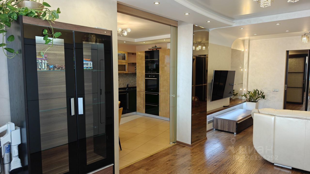 -В гостинной телевизор 55 дюймов (на поворотном кронштейне, развернуть можно в любую сторону ) , есть аудио подготовка под аудиосистему 5.1 (провода проложены под тыловую акустику). Диван из натуральной кожи, раскладывается в спальное место. Детская двойная кровать, сервант и пылесос. Венецианская штукатурка на стенах. Портал с кухней может быть закрыт полностью дверью-купе. Кондиционер.