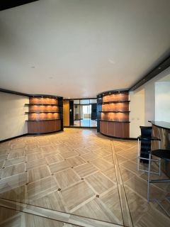 - Просторная гостиная 65 м² с симметричными полукруглыми стенами и эффектной галогенной подсветкой — идеальна для приема гостей и расслабления.