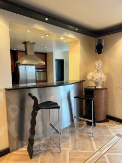 - Кухня 15 м² с барной стойкой: профессиональная техника Gaggenau (духовой шкаф, стеклокерамическая плита с грилем), холодильник Admiral Side by side, мебель SieMatic с посудомоечной машиной Siemens и морозильной камерой Atag.