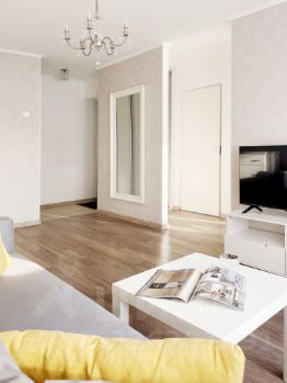 Мебель: вместительные шкафы для хранения вещей, удобный раскладной диван, большой комод, тумба под ТВ, кухонный гарнитур.