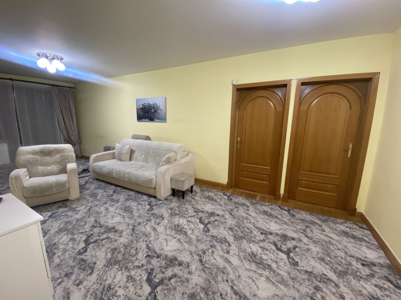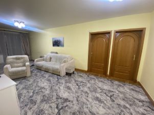 В квартире сделан косметический ремонт. Есть три лоджии, из окон открывается вид на тихий двор. Квартира полностью меблирована: мебель есть как в комнатах, так и на кухне. Из техники: кондиционер, холодильник, посудомоечная и стиральная машины, телевизор. Ванная комната оснащена ванной. Интернет подключён.