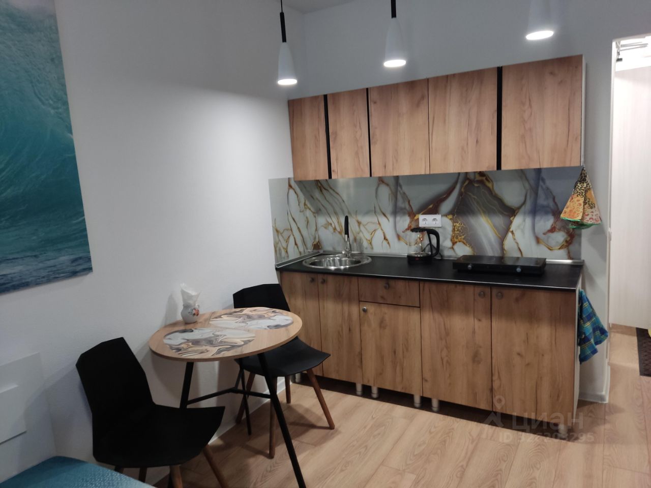 Общая площадь 20 кв.м, комната+кухня: 14,9 кв.м. Санузел совмещенный. Есть вся необходимая мебель. Из техники: электрическая плита, холодильник, чайник, микроволновая печь, стиральная машина, телевизор. Интернет подключается отдельно.
