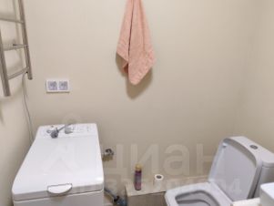 ванна, унитаз, стиральная машина, электрический сушитель для белья, шкаф с подсветкой и электрической розеткой.