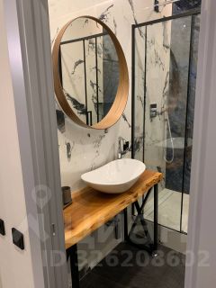 - Столешница ванной комнаты перекликается с подоконниками, также сделана из слэба горного карагача.