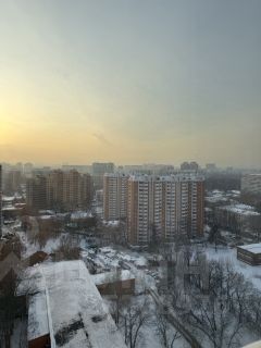 - Окна на сторону заката: тёплый вечерний свет и панорама города с высоты 20-го этажа.