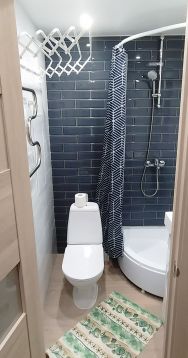 Есть всё необходимое для комфортного проживания: удобный диван-аккордеон (ширина 160 см), холодильник, стиральная машина, варочная панель, микроволновка, чайник, утюг, шкаф для одежды, набор посуды, интернет.