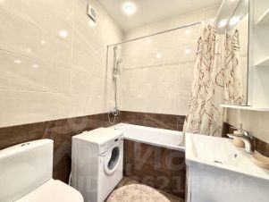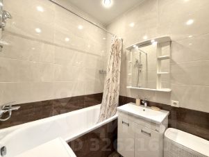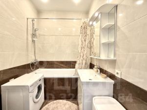 Совмещённый санузел: ванна, стиральная машина, удобная раковина и зеркало с полочками — всё необходимое уже на месте