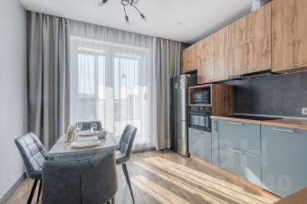 Квартира с евроремонтом, полностью готова к проживанию. Здесь есть всё необходимое для комфортной жизни: кондиционер, холодильник, посудомоечная и стиральная машины, телевизор. Мебель на кухне и в комнате создаёт атмосферу уюта и домашнего тепла. Санузел совмещённый, оборудован ванной.