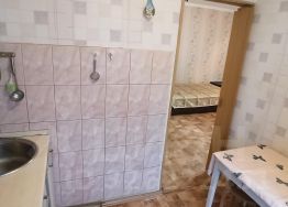 Сдается уютная однокомнатная квартира на первом этаже кирпичного дома, построенного в 1970 году. В квартире выполнен косметический ремонт, стены украшены светлыми обоями с цветочным узором. Просторная комната оборудована шкафами и диваном, что позволяет комфортно разместиться всем членам семьи.
