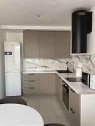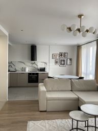 Встроенная кухня полностью оборудована техникой, включая посудомоечную машину. В кухне-гостиной удобный диван с телевизором, кондиционером, обеденная зона, 2 панорамных окна дополняют современный дизайн. При входе отдельная гардеробная, 1 просторный санузел с ванной и стиральной машиной , второй с душевой кабиной при мастер-спальне. Современный формат недвижимости сегодня востребован и интересен для успешных людей!