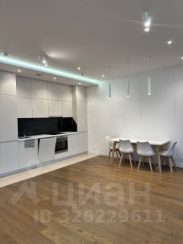 Интерьер выполнен с использованием высококачественных материалов: пол — инженерная доска POLARWOOD, санузлы облицованы керамогранитом ITALON. Кухня оснащена встроенным кухонным гарнитуром, в прихожей и спальне установлены встроенные шкафы с фасадами МДФ и фурнитурой BLUM. Комфорт обеспечивают кондиционеры LG с закрытой дренажной системой, подключённые к общедомовой VRV-мультисистеме.