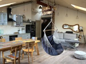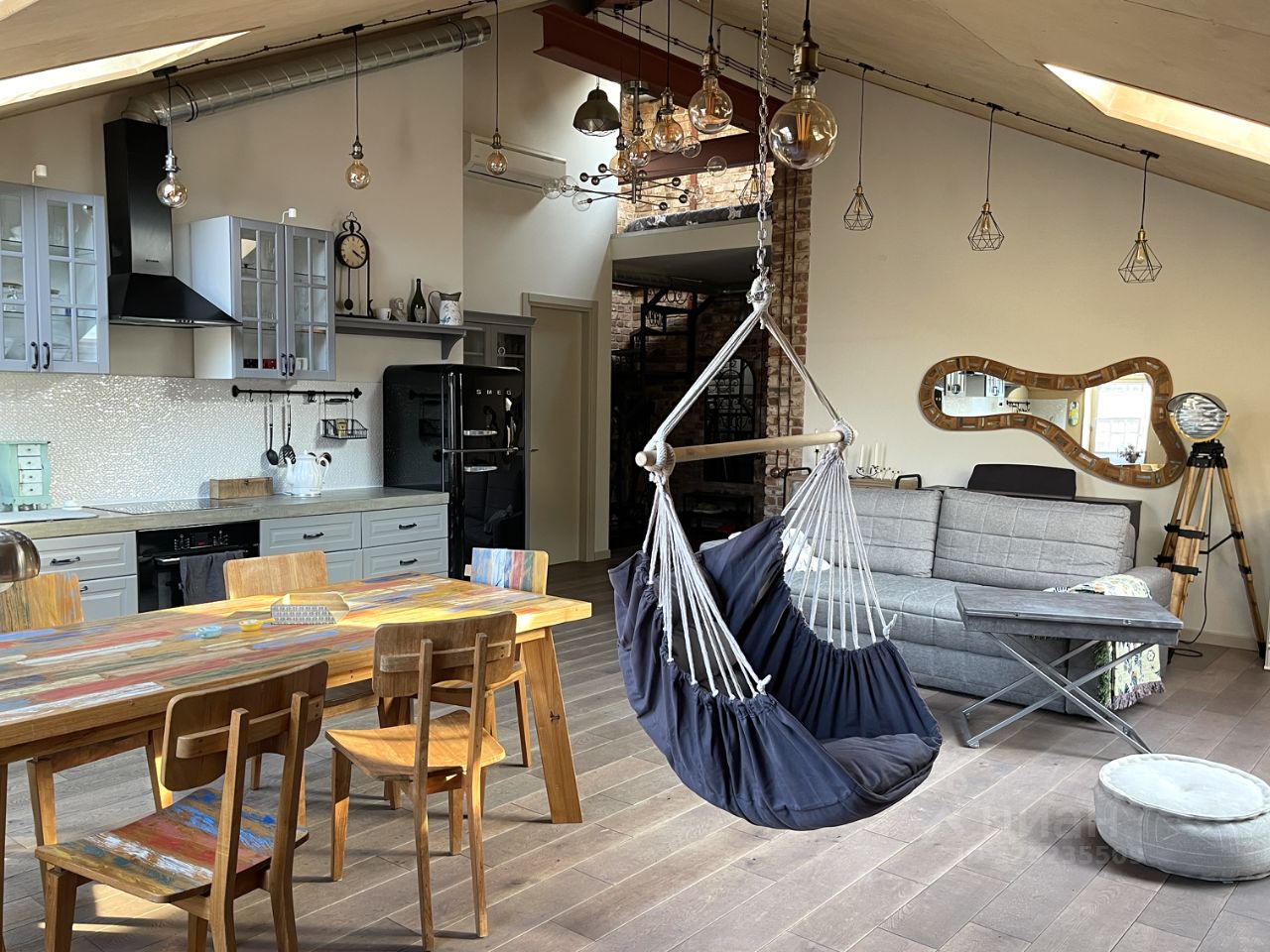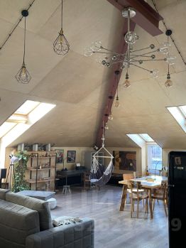 Просторный лофт-мансарда с ощущением личного воздуха и полной перезагрузки: высокие потолки, много света и то редкое чувство, когда дома по-настоящему свободно.