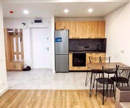 Квартира оборудована кухонным гарнитуром, мебелью и бытовой техникой. Есть: