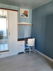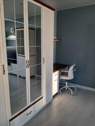 Квартира с евроремонтом, полностью готова для комфортного проживания. В комнате и на кухне есть вся необходимая мебель. На кухне установлена современная техника: холодильник, посудомоечная и стиральная машины. В комнате есть кондиционер и телевизор. Санузел совмещённый, с полноценной ванной. Высота потолков составляет 2,64 метра, а окна выходят во двор, что обеспечивает тишину и спокойствие.