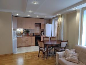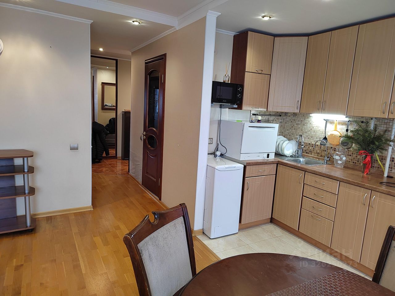 Сдаётся уютная трёхкомнатная квартира общей площадью 66 кв. м на последнем, 12-м этаже блочного дома, построенного в 1971 году. Жилая площадь составляет 45 кв. м, а высота потолков — 2,64 метра.
