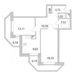 Общая площадь квартиры- 60,3 кв. м. Благодаря высоте потолков 2,8 метра, пространство кажется ещё более просторным.